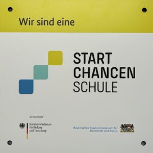 Bei einer großen Auftaktveranstaltung am 27.10.2025 in der Stadthalle Fürth gratulierte Frau Staatsministerin Anna Stolz allen ausgewählten bayerischen Schulen zur Teilnahme am „Startchancen-Programm“ und überreichte ein Schild mit dem Logo.
