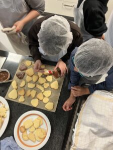 Am 12. Dezember wurde es weihnachtlich bei den Deutschklassen 5/6bg und 5/6cg. Sie besuchten das Seniorenzentrum „Stiftung Mittelfränkisches Blindenheim“ und backten dort gemeinsam mit den Bewohnerinnen und Bewohnern Plätzchen.