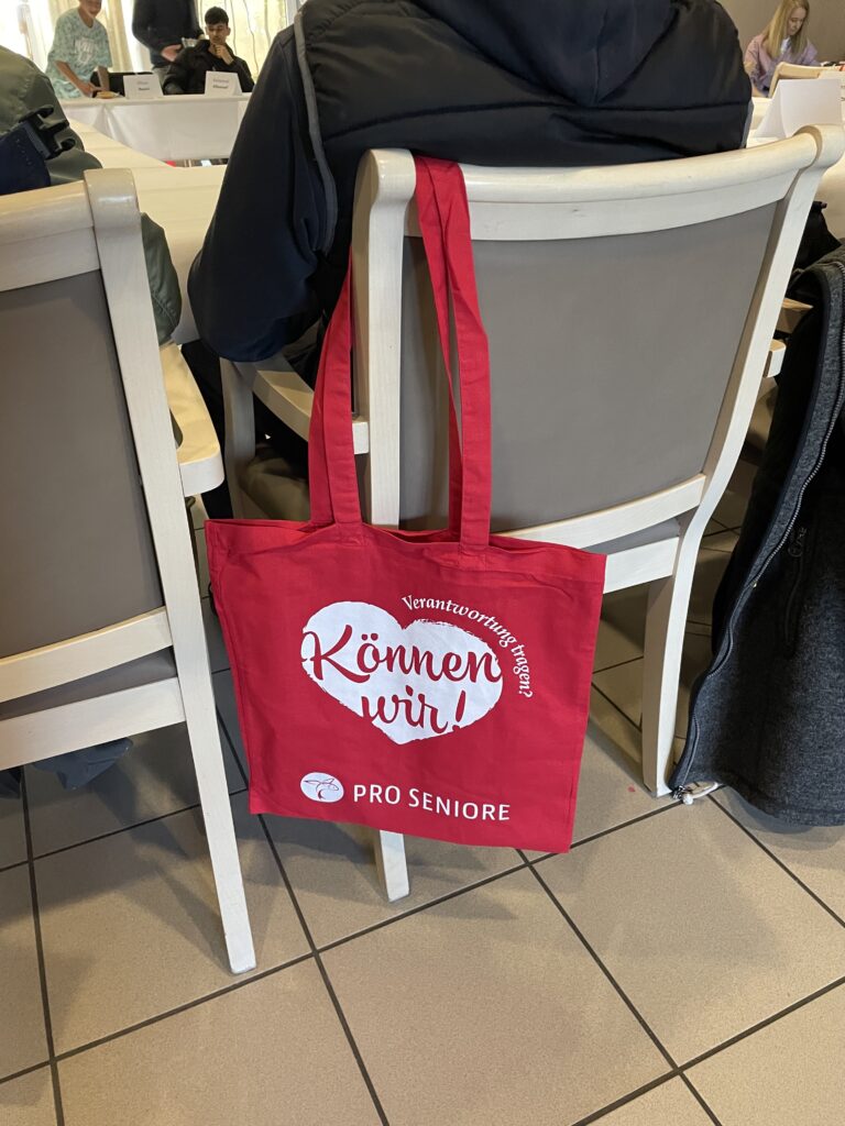 Die Gruppe im Bereich Pflege wurde von Frau Meincke, Herrn Moissl und Frau Türker begleitet. Dort warteten viele interessante Stationen auf die Schülerinnen und Schüler. So wurden Erinnerungsspiele und kleine Bewegungsspiele gemeinsam mit den Seniorinnen und Senioren durchgeführt.