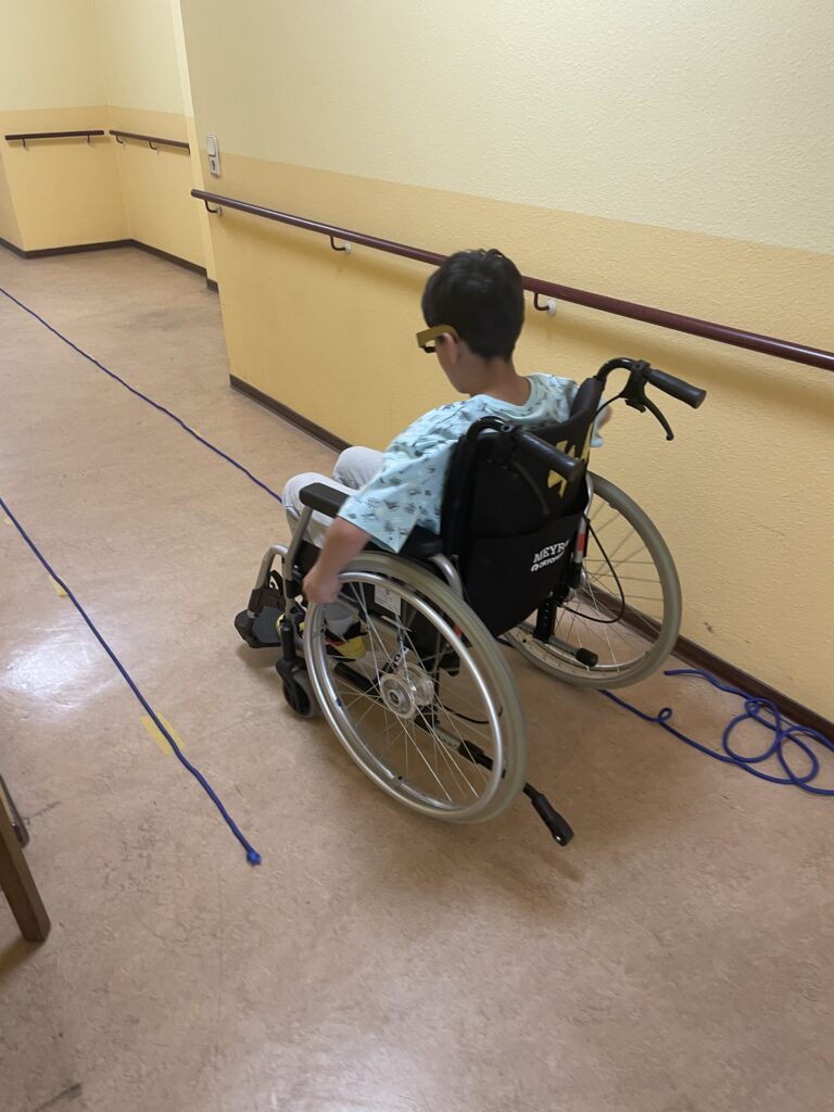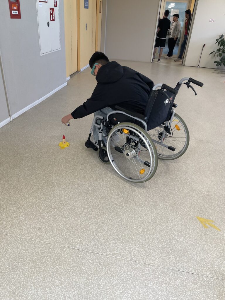 Besonders spannend waren drei weitere Stationen, an denen die Jugendlichen ihre Fähigkeiten im Rollstuhl testen konnten. Dabei kam es sowohl auf Genauigkeit als auch auf Schnelligkeit an. Zusätzlich durften sie eine spezielle Brille tragen, durch die das Sehvermögen eingeschränkt wurde. So konnten sie sich besser in die Situation der Bewohnerinnen und Bewohner hineinversetzen.