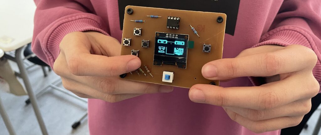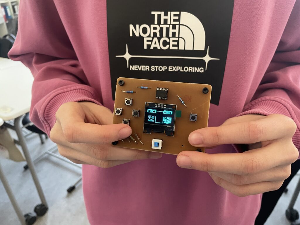 Das selbstgebaute, gelötete Spiel einer Schülerin, die ihren Praktikumstag bei Bosch GmbH verbracht hat.