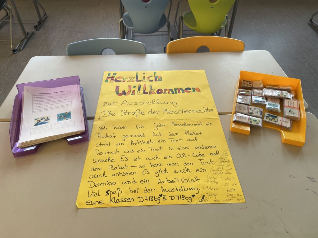 Die Ausstellung war zwei Wochen lang für alle Schülerinnen und Schüler der Schöller Mittelschule zugänglich. Begleitend konnten die Klassen ein passendes Arbeitsblatt bearbeiten und ihr Wissen spielerisch bei einem Domino vertiefen, das ebenfalls thematisch auf die Menschenrechte abgestimmt war.