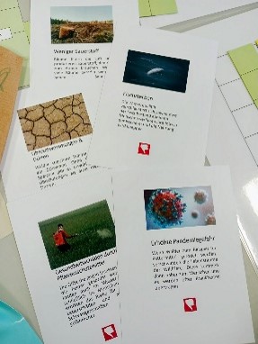 Außerdem konnten sie die Auswirkungen auf die Natur anhand von Ereigniskarten verstehen (z.B. Hitzewellen, Überschwemmungen, Dürren, Fischsterben, erhöhte Pandemiegefahr….).