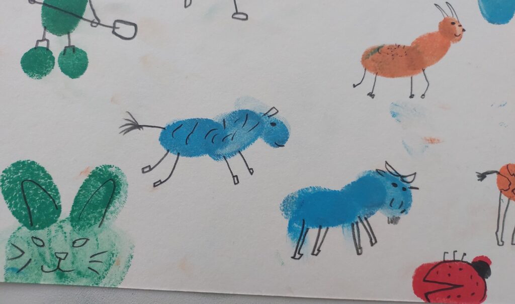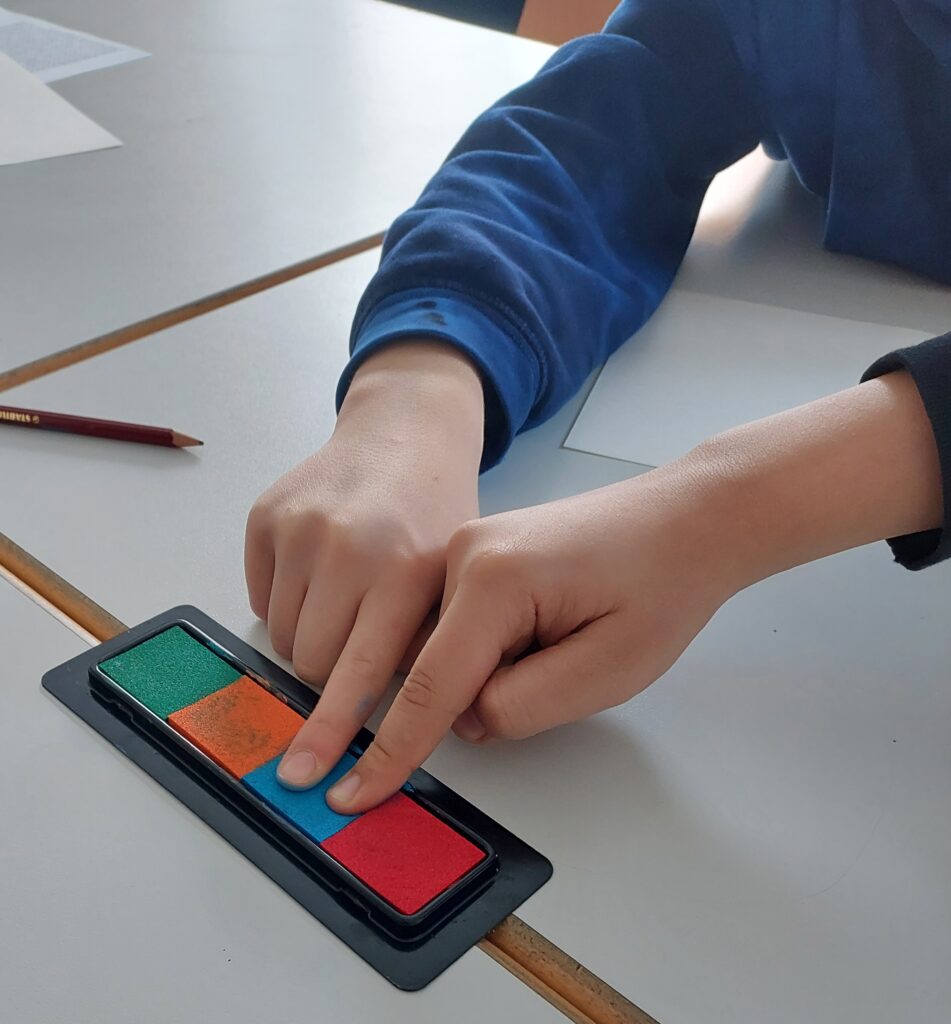 Zum Abschluss wurden die Schülerinnen und Schüler kreativ: Aus bunten Fingerabdrücken entstanden fantasievolle Tiere und aus Prospekten falteten sie kleine Mäuse.